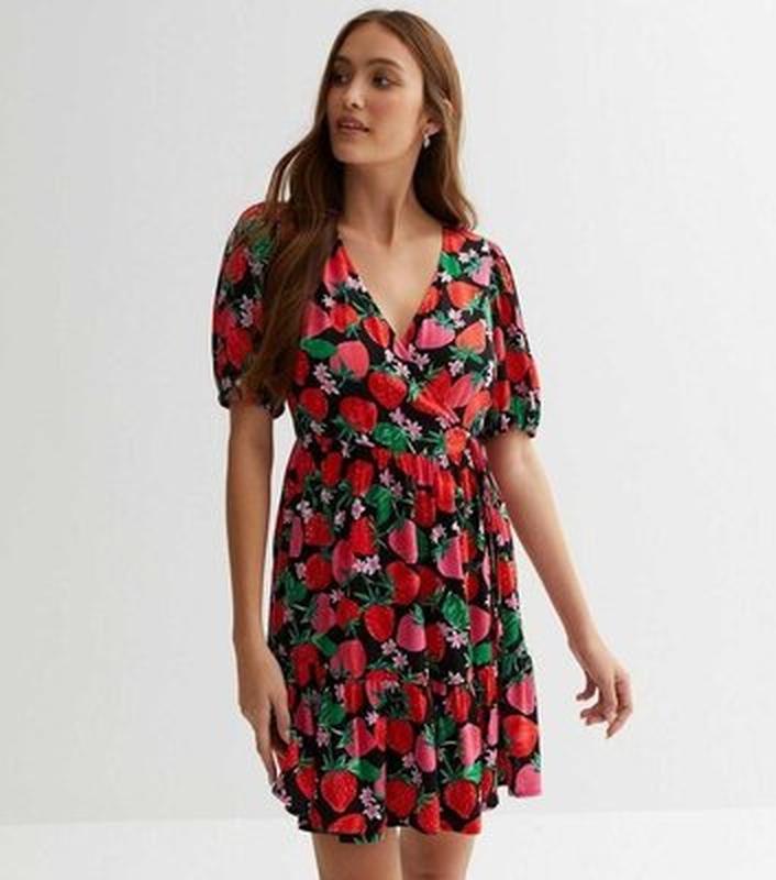 🍒8uk/наш 42-44 размер 🍒яркое платье на запах в принт клубники 🍓🍓🍓 New look 🍒 длина 87 см/до талии 36 см плечи 32 см длина рукава 28 см грудь 76-84 см за счет запаха талия 68-70 см стегна 100-102 см 🍒100% вискоза штапель 🍒состояние новой вещи #585#