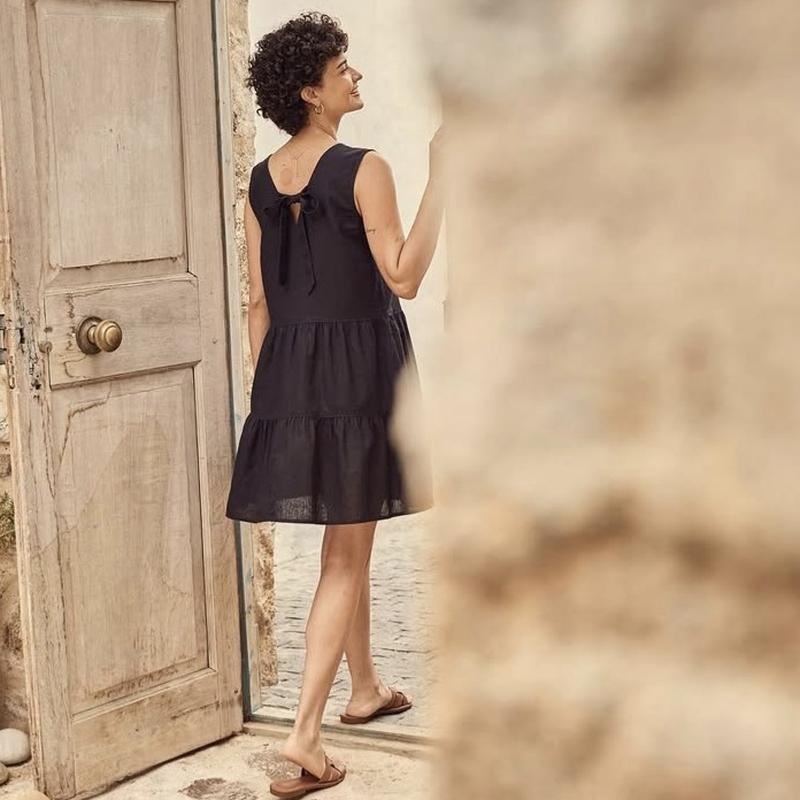 Лляна сукня вільного крою. Тканина 55% льон, 45% бавовна. Ідеально на літо. Стан нової речі. Розмір вказано 42 європейський. Заміри: Напівобхват в грядях: 51 см. Довжина: 90 см.