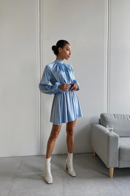 Жiночa сукня міні з довгими зав’язками блакитна