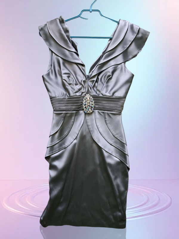 Платье красивого серого цвета,стан идеальное, одевалось один раз, атлас, размер S.