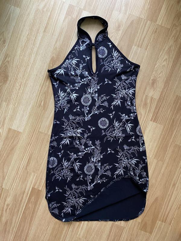 Сукня з чокером Є розрізи по боках Спинка гола Гарний принт