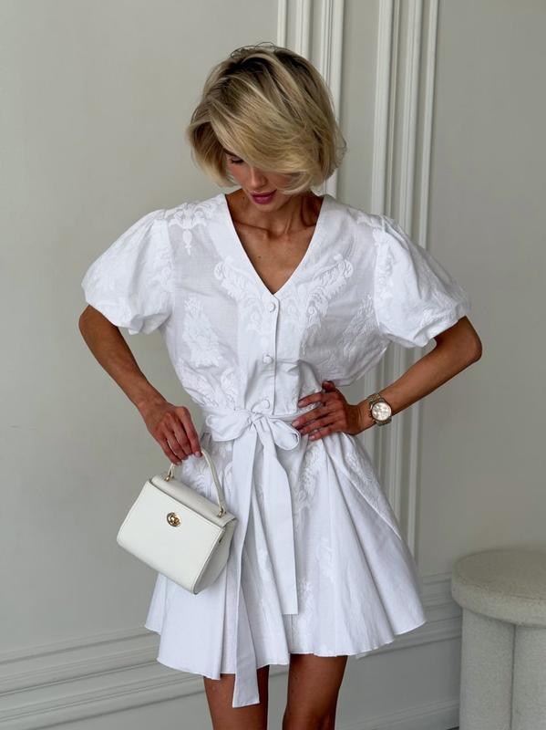 Фабричное качество🔝New Limited collection 🕊 Original Brand 🇺🇦 Романтическое платье из прошвы - идеальный выбор для прогулок, отдыха или особых моментов в теплое время года🤍 ✓ Короткий рукав-фонарик. ✓ На талии эластичная резинка. ✓ Расклешенная юбка создает романтичный и легкий силуэт. ✓ В комплекте идет пояс, подчеркивающий талию и придающий завершенности образу. ✓Силуэт: свободный (под резинку) ✓Рукав: короткий ✓Застежка: на пуговицах к талии ✅Материал: прошва, хлопок ✅Состав материала: 99% хлопок, 1% эластан 📍Size: XS, S, M, L 🔽 Замеры по готовому изделию: 📐Size XS: Объем по груди: 98 см Объем по талии (резинка) 60-94 см Объем по бедрам: 164 см Длина по спинке: 83 см Длина до талии/длина юбки: 41 см/42 см Объем рукава сверху: 44 см Длина рукава: 22 см Длина рукава по внутреннему шву: 5.5 см. 📐Size S: Объем по груди: 102 см Объем по талии (резинка) 64-98 см Объем по бедрам: 106 см Длина по спинке: 83 см Длина до талии/длина юбки: 41 см/42 см Объем рукава сверху: 45 см Длина рукава: 22 см Длина рукава по внутреннему шву: 5 см 📐Size M: Объем по груди: 106 см Объем по талии (резинка) 68-102 см Объем по бедрам: 110 см Длина по спинке: 84 см Длина до талии/длина юбки: 42 см/42 см Объем рукава сверху: 46 см Длина рукава: 23 см Длина рукава по внутреннему шву: 5,5 см. 📐Size L: Объем по груди: 111 см Объем по талии (резинка) 72-106 см Объем по бедрам: 114 см Длина по спинке: 85 см Длина до талии/длина юбки: 42 см/43 см Объем рукава сверху: 47 см Длина рукава: 24 см Длина рукава по внутреннему шву: 5 см *Параметры модели на фото и видео: 84 -58 -84 , рост: 174см. На модели изделие в размере XS. ✅ Color: белый *В зависимости от настроек яркости, контрастности , насыщенности вашего монитора, оттенок изделия на видео и фото может немного отличаться. *При разном освещении некоторые цвета могут менять оттенок при дневном освещении на улице и в помещении при искусственном освещении. ✅ Материал рremium, протестирован на прочность, износостойкость. ✅ Качественная дорогая фурнитура ✅ Пошив на оборудовании из Германии и Японии по современным лекалам. ✅ Фабричное производство, официальная Торговая Марка. ✅ Трендовые модели сезона ✅ Возврат / Обмен согласнaо Закону Украинaы "О защите прав потребителя" ✅ Наложенный платеж с предоплатой ✅ Отправка Новой Почтой