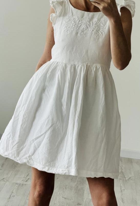 Платье платье сарафан Zara лен, имеет подкладку. Состояние новой. Длина 85 см, ПОГ 41 см, ПОТ 38 см, бедра свободные, с вышивкой