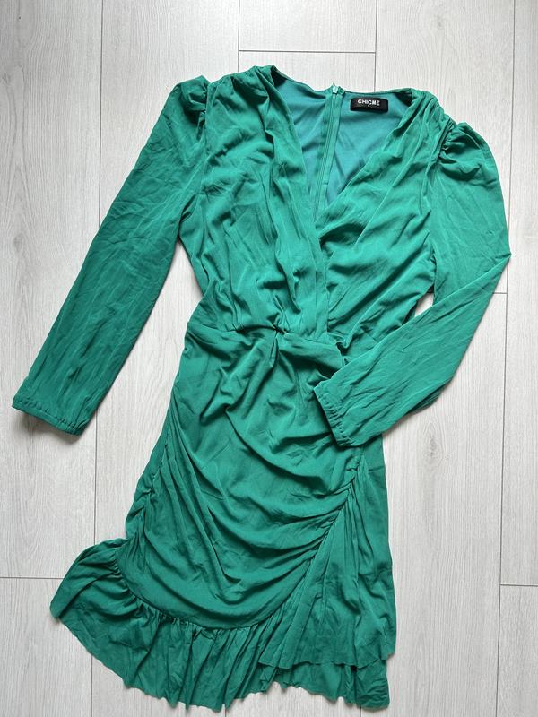 Вишукана зелена сукня на запах Стан нової Довжина 89 Пог до 58 Пот до 44 Пос 51