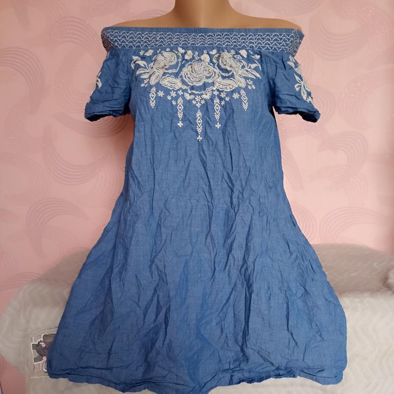Женское хлопковое платье, размер S. ПОГ 45, длина 75 полуобхват платья виназа 70 Декор: вышивка, бисер. По бокам 2 кармана. Стан - идеальный