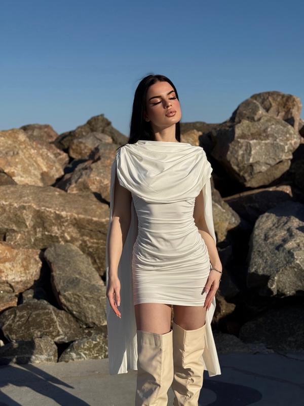 Стильная мини-платье с драпировкой, что идеально подчеркивает фигуру. Плотная ткань комфортно облегает тело и подчеркивает силуэт. Идеальный вариант для фотосессий, вечеринок или особых событий. Размеры:хс,с,м,л🤍