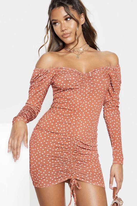 Дуже красива міні-сукня в горошок від бренду PrettyLittleThing. Тканина 95% поліестер, 5% еластан дуже гарно тягнеться. Підійде на розмір xxl-s. Довжина сукні регулюється шнурівкою. Якщо потрібні заміри сукні пишіть в особисті повідомлення. Дивіться і інші мої оголошення.