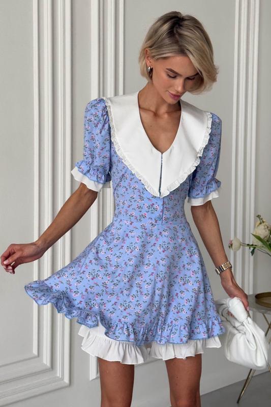 Легкое мини платье с шортами под юбкой платье с короткими рукавами и воротником