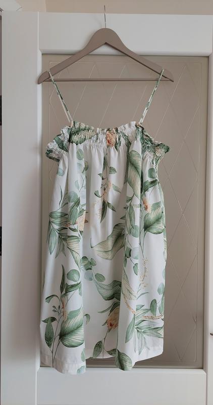Платье сарафан H&M в цветочный принт на тонких, регулируемых бретелях. Тканина 100 коттон. Легкая, красивая на лето идеальный вариант. Размер М. Длина по боковому шву 67 (перед чуточку длиннее), ширина по резинке 44, бретельки регулируются.