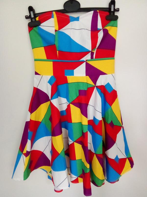 Шикарна сукня, яркий принт. Открытые плечи, сзади молния.