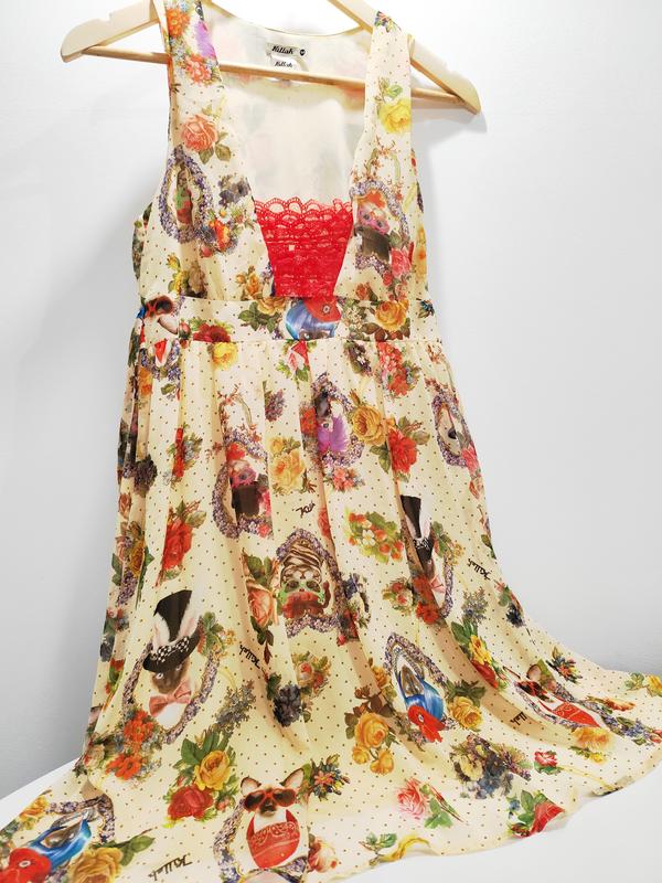 Эффектное шифоновое платье итальянского бренда. Застегивается сбоку на молнию, на подкладке, не просвечивается. Пояс завязывается сзади на талии. Размер указанного М. Ткань - 100% ПЭ.
