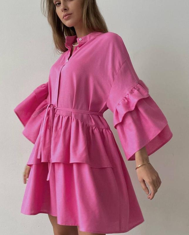 Мод 358in Розмір: 42-44, 46-48 Тканина: льон Колір: чорний, рожевий , малина, блакитний Пояс йде в комплекті !