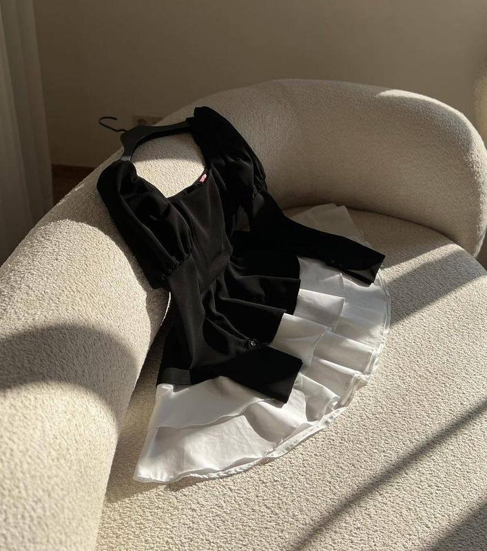 Знову отримали 💕 Наш хіт 🔥 💥Сукня Модель ln 286 ▫Тканина - костюмка + софт ▫Розміри - 42-44 та 44-46 ▫Кольори - чорний + білий Wow ефект в цій сукні гарантовано😍 Крій, який ідеально змоделює вашу фігуру, якісна тканина та посадка, все продумано до деталей ❤️ Ззаду на змійці, спідниця і сукня одягається окремо👌🏻