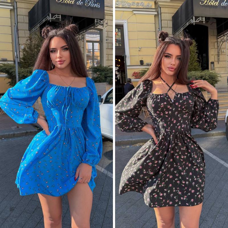Тканина: софт Розміри: 42-44, 46-48 Кольори: чорний з рожевими квітками, блакитний з квітами Фото реал🔥 Відмінна якість! Найніжніша жіночна сукня із легкої невагомої тканини. Спинка сукні іде на резиночках, тому адаптується під будь який тип фігури. Дуже добре тягнеться. На грудях зав‘язка, яку можна зав’язати у двох варіаціях, а також нею можна регулювати обсяг у грудях.