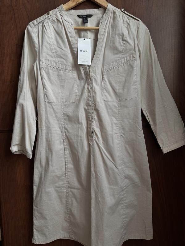 Стримана та дуже елегантна бежева сукня туніка Mango (Котон) Приховані ґудзики та імітація карманів Можна носити під поясок Розмір S Заміри по запиту