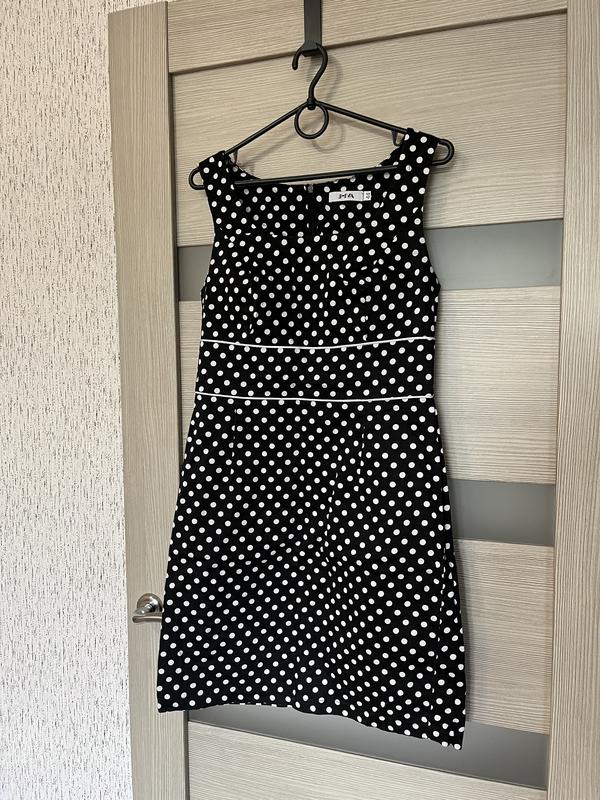 Довжина виробу 88 Напівобʼєм грудей 40 Напівобʼєм талії 38 Напівобʼєм стегон 50 Сезон літо, матеріал бавовна, принт - горох.