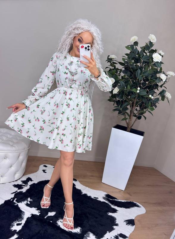 Платье женское платье софт цветочный принт длинный рукав