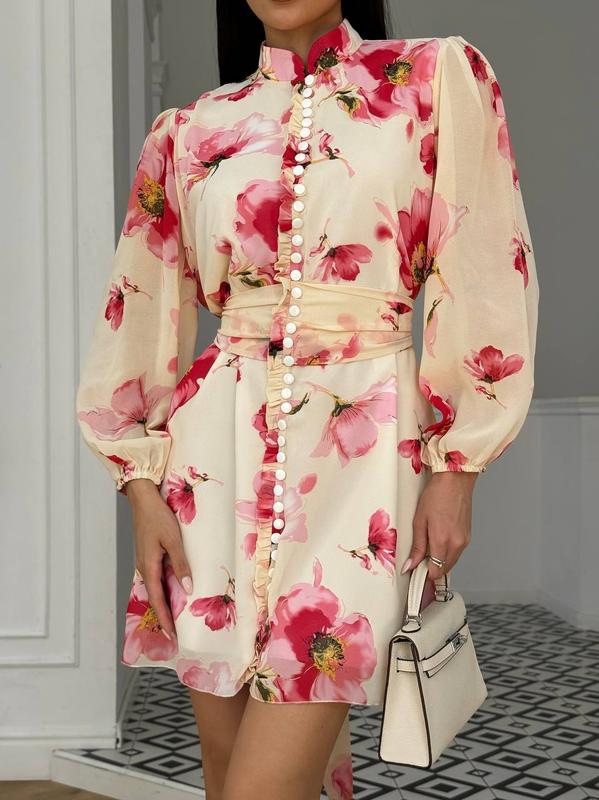 Женское летнее нежное шифоновое платье с длинным рукавом в цветочный принт весна лето