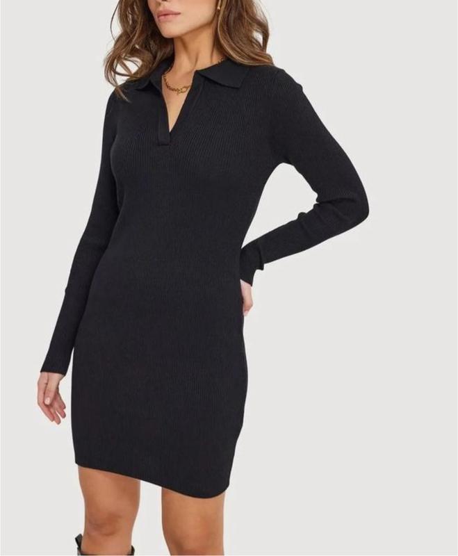 Сукня поло жіноча чорна в рубчик