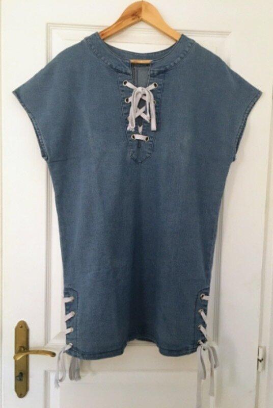 Джинсова коротка сукня Designed in Paris - 100% коттон Размер М, на 46-48 наш Свободного кроя, слегка зауженное к низу Реглан Пройм 22 см В грудях 55,5 см У таліі 53 см В стегнах 52 см Длина спинки 80 см Идеальное состояние Торгу нет