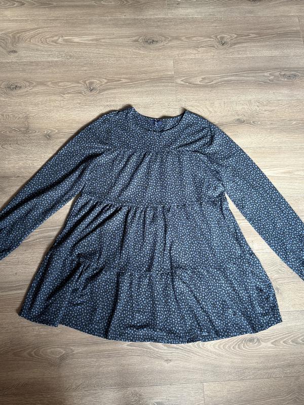 Женское свободное платье на длинный рукав Next, состояние идеал, короткое, свободного кроя, в мелкую голубые цветочки, не подчеркивает несовершенств фигуры, по наборке размер л, аоэ и на с-м тоже будет красиво