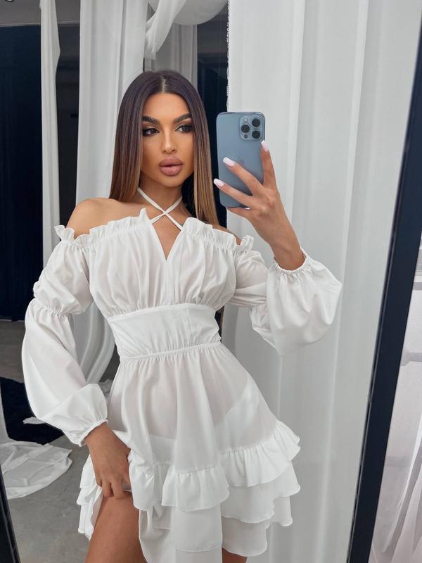 Та само мини платье, созданное для комплиментов! 😍💫 Легкое, женственное и трендовое - это платье с открытыми плечами, пышными рукавами и фигурным вырезом станет любимицей твоего летнего гардероба. Воланы на юбке добавляют нежности и динамики, а шнуровка на спинке не только регулирует посадку, но и создает акцент на талии. Ткань "софт" приятная к телу и красиво держит форму Модель: 213.1/8 Размер: S-M; M-L Тканина: софт Цвет: белый, черный, шоколад, изумруд Заказа сейчас - и это роскошное платье станет твоим must-have этого сезона! 🌟