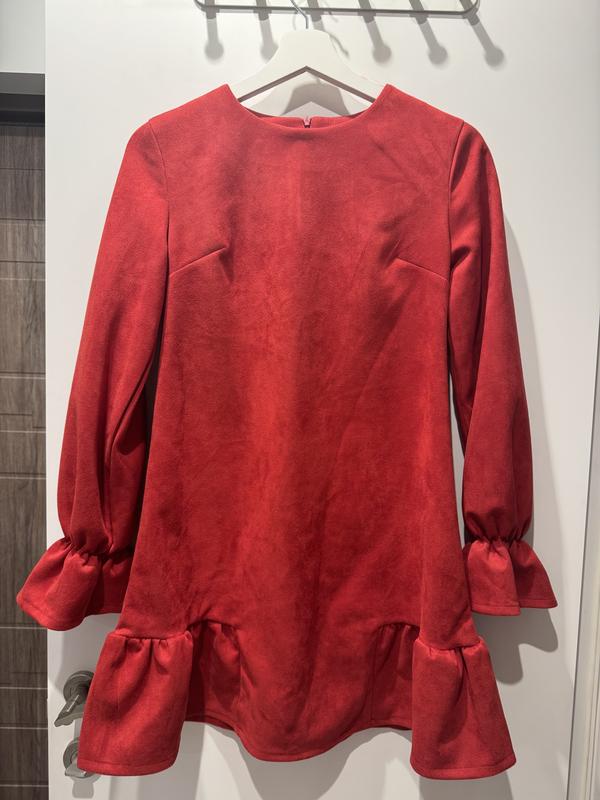 короткое красное платье с воланами
