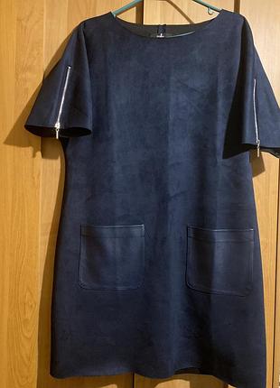 Плаття zola у відмінному стані (одягнене один раз на свято), темно синього кольору з шкіряними кишенями і блискавками на рукаві. Дуже щільна тканина, яка скриє всі недоліки
