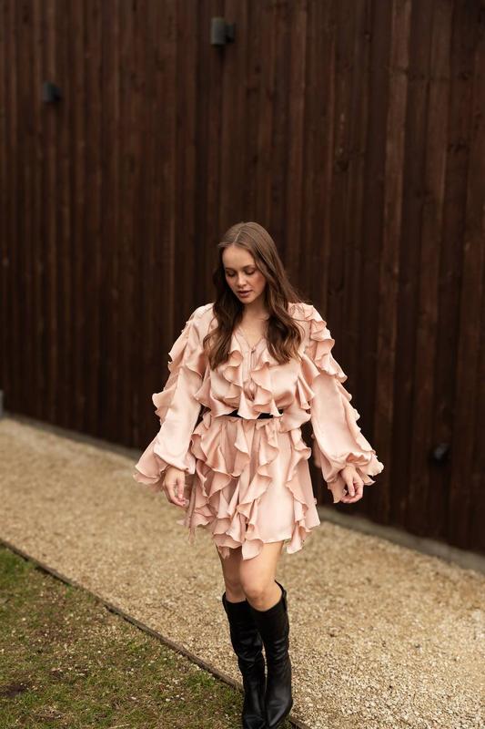 Платье Флоренция – это воплощение женственности и мягкости в каждом движении. Нежный персиковый оттенок подчеркивает естественную красоту, а каскадные воланы создают игривую динамику. Объемные рукава и свободный крой дарят комфорт и свободу, делая эту модель идеальным выбором для фотосессий, прогулок или романтических вечеров. Ткань: трикотаж жатка - легкая, дышащая, с мягкой текстурой. Размер: универсальный (42–46) 🏷️Цена : 2880 грн