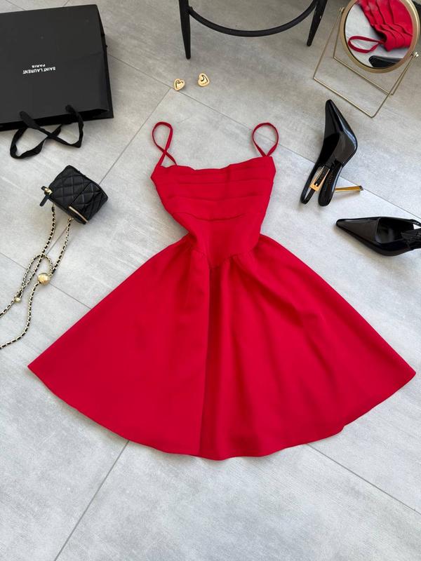 Жіноча червона нарядна коротка сукня на бретелях