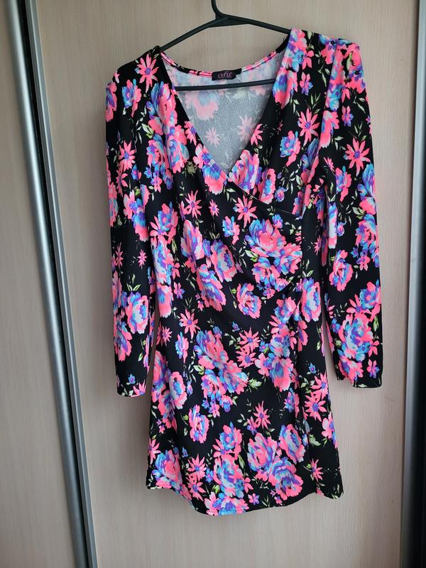 Яркое мини платье в цветочный принт. Стан идеален. Заміри надам.
