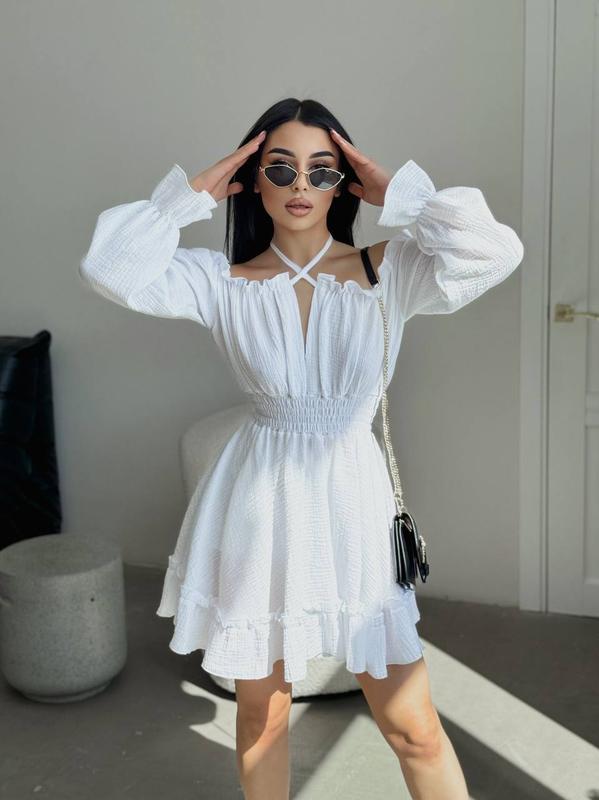 Роскошное платье❗️ очень нежная и романтичная, комку затягивается на завязки, с длинным руковым на резинке, талия на простроченной резинке, юбка широкая солнцеклеш, по низу присборенная оборка🌸🌷 • 649 грн Арт. 10510-5 Ткань: качественный натуральный "Муслин", состав 100% хлопок; ткань: Турция, очень приятная на ощупь; хорошее качество ткани и пошива🌸 Цвета: белый, розовый, голубой, желтый, черный Размер: с-м(42-44) Об.. гр. до 94 см. Об.талии до 70 см. Длина 83 см. Размер: м-л(46-48) Об. гр. до 100 см. Об.талию до 78 см. Длина 85 см.