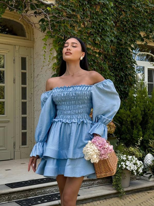 Женское летнее льняное короткое платье мини с пышной юбкой лето весна голубая