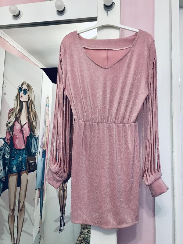 Легкое короткое платье с люрексом и оригинальным рукавом в хорошем состоянии. Без броков.