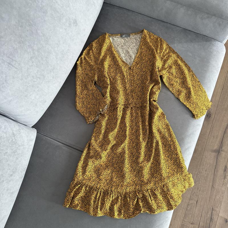 Класна сукня фірми Papaya. Розмір 10. Наш S. Довжина 91 см, плечі 38 см, рукав 44 см(трьох четвертих), груди 47 см, пояс 40 см.