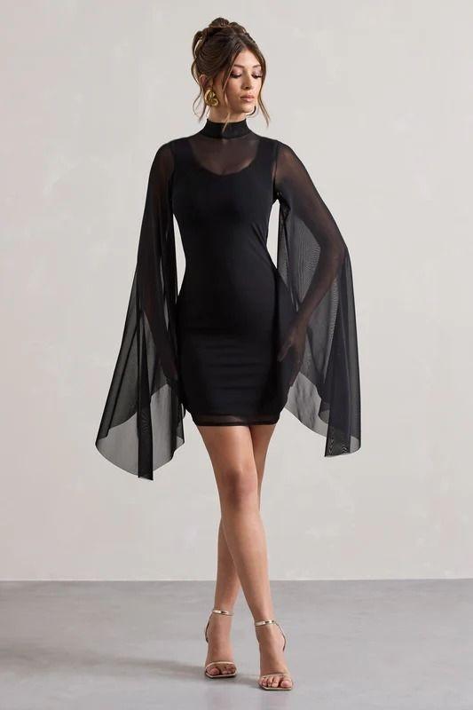 Платье прозрачная сетка без подкладки с длинными рукавами клеш magelite