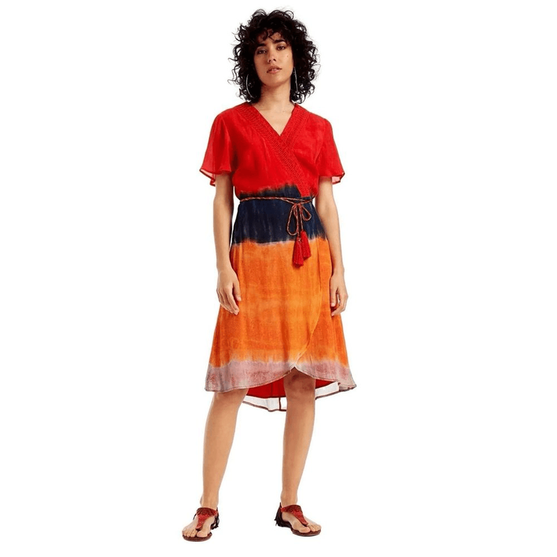 Шикарное платье на запах , бренда Desigual, 48%,вискоза 52%, шелк , подкладка 20%полиэстер Пог 44пот 35, поб 46, плечи 35 Рукав 19, пройма 22, бицепс 18,