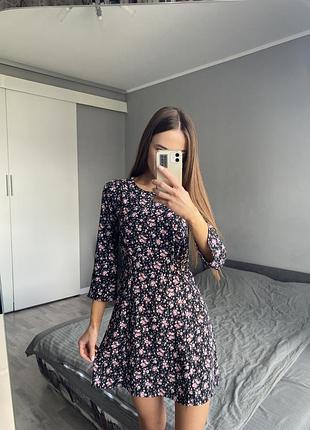 Жіноча сукня H&M, розмір 34, ззаду застібається на блискавці, довжина вище коліна, в чорному кольорі з маленьку рожеву квіточку