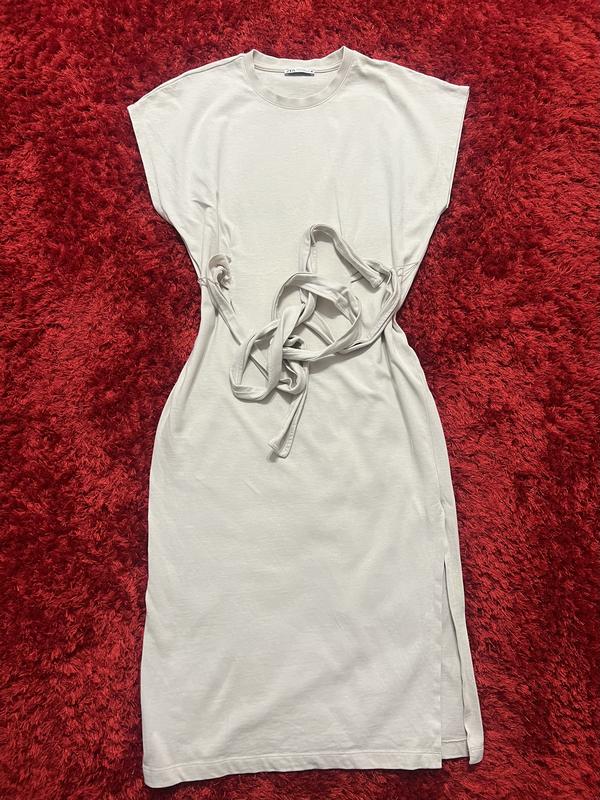 Літнє плаття Zara , світло бежевого кольору, на пояску , з одного боку є розріз . Розмір M
