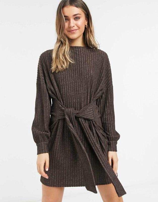 Коричнева ребриста міні-сукня asos design із зав’язкою розмір 34