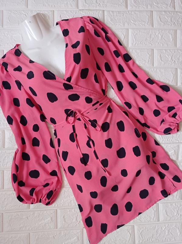 Очень красивое платье мини,женское на запах с красивыми широкими рукавами, ткань тонкая, усадочная, полиэстер,новое без бумажной бирки, без консультации, размер указанный EUR-36, замеры на фото