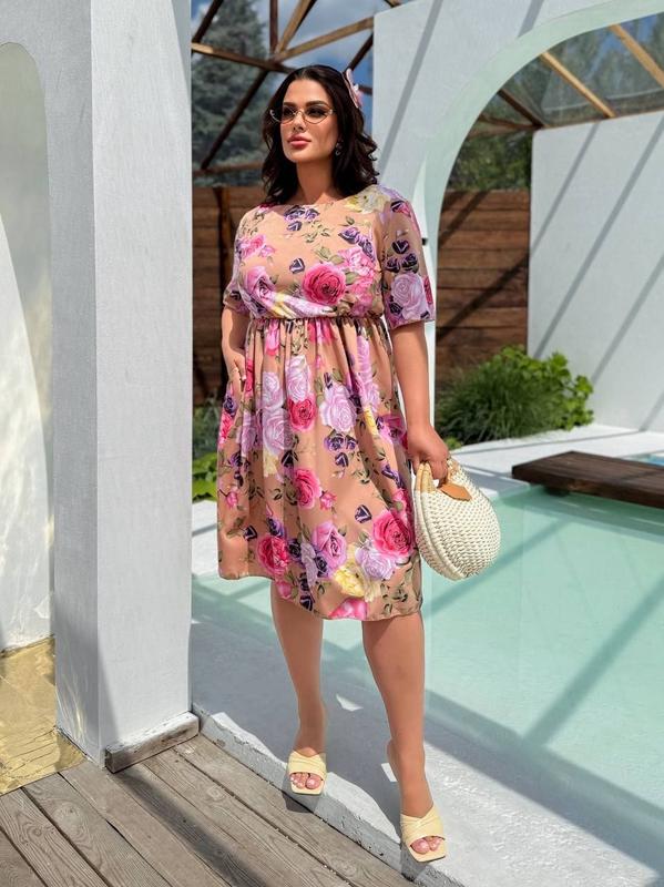 ⬆️Сукня «рожева троянда» Мод 0876❤️103 Тканина: супер софт Колір: рожева троянда на фоні капучино та на жовтому Розмір: 50-52,54-56,58-60 Є кишені,зручне і вільне по крою Ог=********** Довжина виробу-105; Довжина рукава-15/29 Обхват-38;