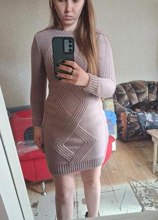 Теплое вязаное платье
