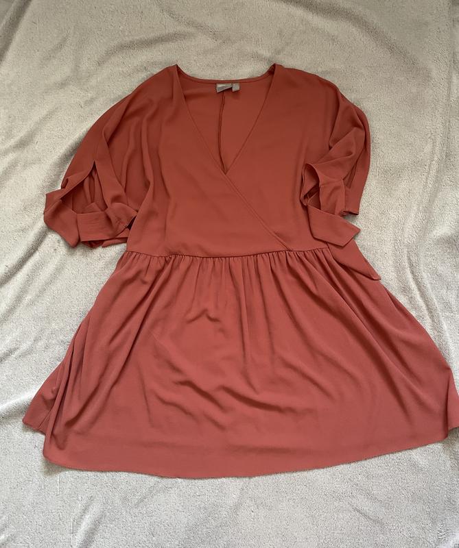 Красиве плаття теракотового кольору. Повномірна М, навіть буде трошки вільно. Рукави на завʼязках.