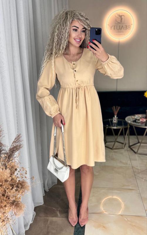 Платье Мод 295 Тканина костюмка Размеры Беж-42-44 Оливка-42-44,46-48,50-52 Платье с вышивкой, на талии кулиска, кнопки рабочие. Длина 98 см ✅Замеры✅ 42-44 ог 94-96 см 46-48 ог 100-102 см 50-52 ог 106-108 см