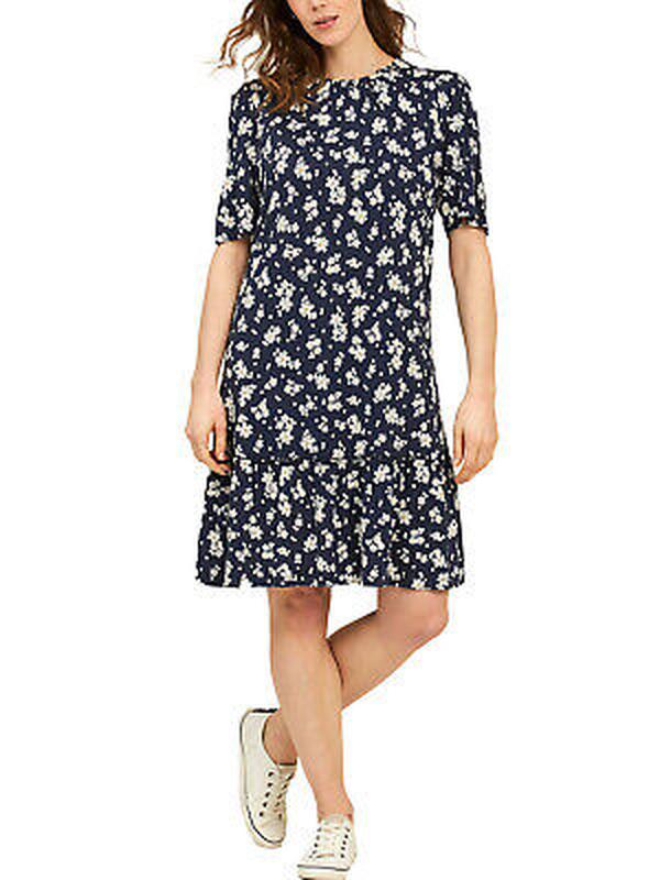 Для более точного определения, замеры, сравнивайте с измерениями подобной вещи, а не со своими объемами. Милое платье миди в цветочный принт. Ткань тонкий трикотаж, не просвечивается, тянется. Крой прямой, низ рюша. Застегивается на одну пуговицу сзади. Состояние: очень хорошее. Эффекты: нет. Размер на бирке: 10/38 (Замеры изделия измеряются в полуобхвате, а не от шва до шва!) Замеры изделия: Плечи 38 см., Рукав 29 см., Высота проймы 27 см., Ширина рукава 20 см., Полуобхват груди 51 см., Полуобхват талии 48 см., Полуобхват бедер 53 см., длина по спине 90 см, длина от плеча 95 см. Состав ткани: бирка срезанная. Страна производитель: Индия. Бренд: Fatface. Оплата и доставка: Оплата на картку монобанк. Брожение на оплату только 24г. При изменениях цель покупать обязательно сообщайте! Доставка: На время введения военного состояния уточняйте или возможна доставка до Вашего пункта. Актуальные новости можно уточнить на сайте перевозчика и по телефону контакт-центров. Не забудьте ПОДПИСАНИЕ ПОБУЕТЕ быть в курсах всех новинок и распродажей!
