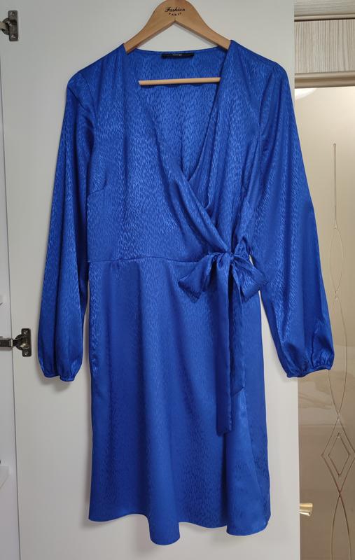 Предлагаю красивое платье в невероятно красивом цвете от George. Цвет насыщенный красивый, со скрытым принтом. Ткань легкая, приятная, шелковистая, не просвечивается, не жвакается. На грудях на запах. На талии резинка и завязки сбоку для регулировки ширины по талии. Рукава на резинке. На бирке размер 14, но ориентируйтесь на замеры. Замеры: грудь 55-56, талия 40 до 50 тянется, бедра 58, рукав 60, длина 95.