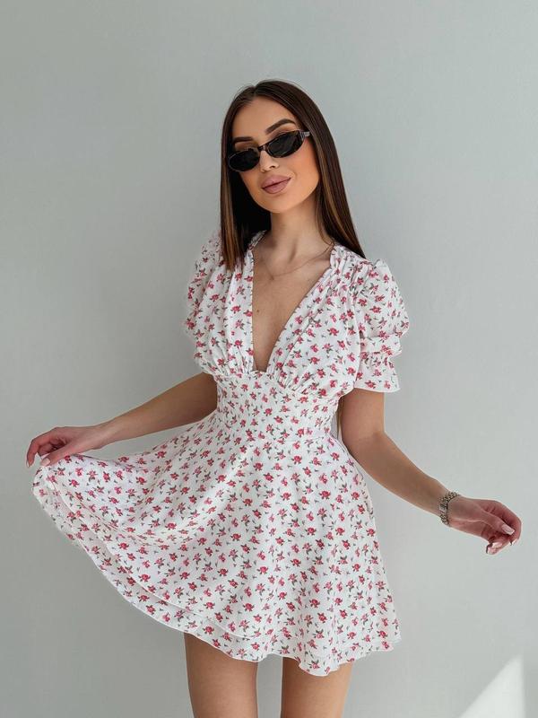 Фото и видео реал Сукня Мод 1216 Тканина - софт принт Размеры - 42-44 и 44-46 Цвета - белый принт и черный принт Крист) Легкое и романтичное платье с нежным цветочным принтом - идеальный выбор для теплых дней. Модель красиво подчеркивает силуэт, а рукава-фонарики добавляют женственности Мягкая, воздушная ткань дарит комфорт, а V-образный вырез добавляет легкий шарм