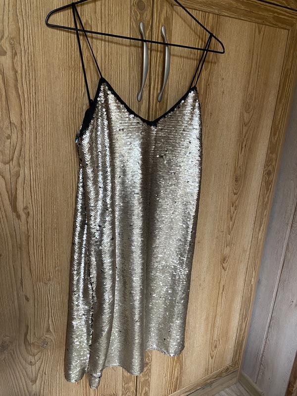 Сукня обхват груди 82 Обхват бедер 90 Длина без бретель 76 С бретелями 90 из пайеток золотая вечерняя
