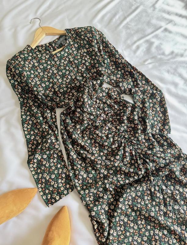 Чудова, віскозна та легка, приємна сукня від "Primark" (склад - 100% віскоза). Неймовірний фасон - має розріз на ніжці та елегантну жатку на ньому - буде дивитись дуже ефектно. У Розмір - М (12/40) Довжина - 122 Півобхват грудей - 40 Півобхват талії - 40 Півобхват бедер - 48